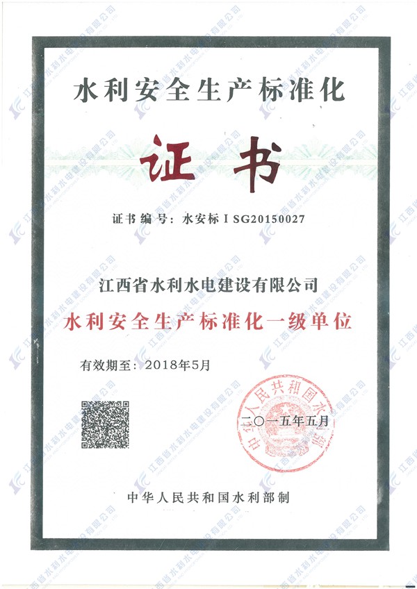 2015年6月,我公司順利通過水利部安全生產(chǎn)標準化一級單位的最終評審,獲得“安全生產(chǎn)標準化一級單位”證書,標志著公司安全生產(chǎn)首先邁入了“標準”時代。