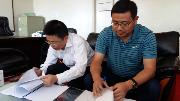 2015年7月8日, 肯尼亞分公司總經(jīng)理賀翔,在污水處理項目唐志兵經(jīng)理的陪同下,與業(yè)主南維多利亞湖水利委員會簽訂了在建污水項目的增項合同。增項工程工期為6個月,至今年年底結(jié)束,主要包含兩個熟化池,數(shù)公里管線,數(shù)個公共廁所,以及兩條進場路等。具體合同條款參照原合同執(zhí)行。此次增項合同的簽訂標志著我司在建污水項目得到了業(yè)主單位的肯定,表達了業(yè)主方愿意與我司長期合作的意向,為今后公司在肯尼亞西部市場的開發(fā)奠定了更扎實的基礎(chǔ)。