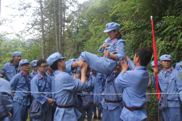 抵達井岡山后,全體人員立刻進入三灣隊伍整編環節,推薦隊長、政委和旗手,設計隊名、口號和LOGO。很快“飛龍隊”、“戰鷹隊” 等名字紛紛閃亮登場。“龍征萬里,所向披靡”、“ 群狼行千里,星火可燎原”等口號一次又一次迎來全場的陣陣歡呼。隨后進行了“穿越叢林、突破封鎖線、匍匐前進、火線救援”4個比賽項目,這些比賽項目,增強了大家的團隊意識,每名成員充分認識到了團結協作、友愛互助的重要性,使大家在比賽中受到啟發、受到鼓舞、更使大家得到了鍛煉,經受了考驗。