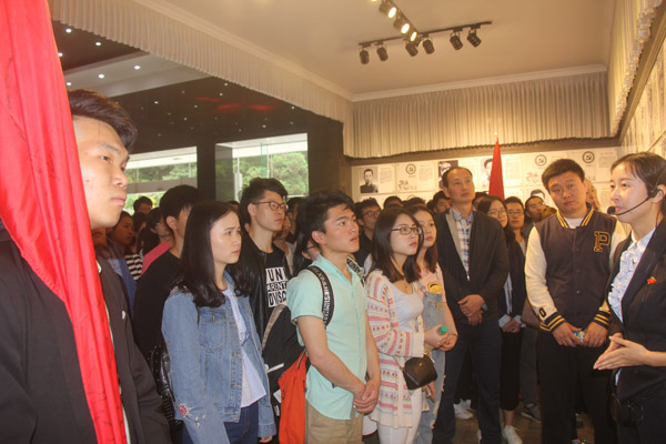 大家認真聽取講解員講解革命烈士光榮事跡