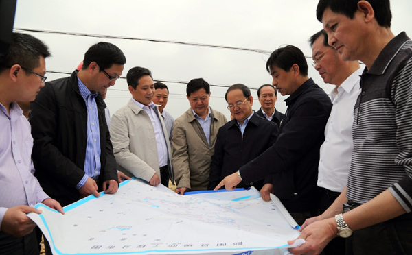 陪同視察的還有省政府秘書長譚曉林,省水利廳廳長孫曉山、副廳長羅小云,上饒市委書記陳俊卿、市長潘東軍及鄱陽、萬年縣委縣政府領(lǐng)導(dǎo)等。