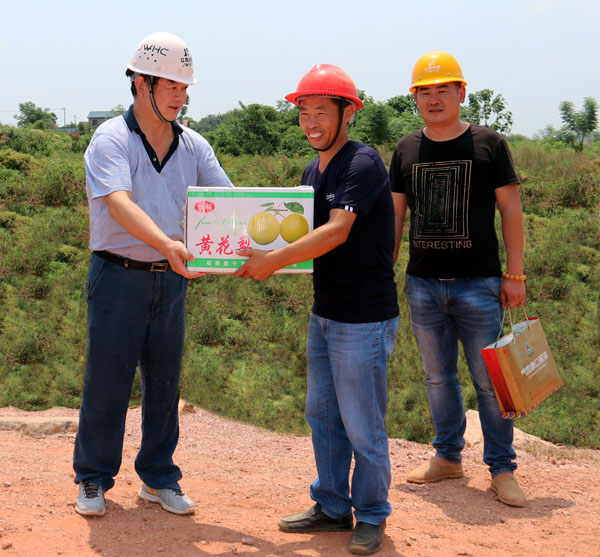 頂著炎炎烈日,王元旦董事長一行先后來到盧前隧洞、北樓隧洞、曾家渡槽、渡王家渡槽、會源隧洞等施工現(xiàn)場進(jìn)行檢查,親切看望慰問現(xiàn)場員工,并送上了防暑降溫慰問品。每到一處,他總是親切詢問員工的工作與生活情況,并叮囑項(xiàng)目部要合理安排工作時間,保障防暑降溫物品的供給,為員工提供安全、清涼的工作與生活環(huán)境。