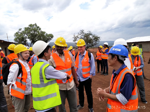 考察團(tuán)一行在項(xiàng)目組人員的陪同下,先后實(shí)地參觀了營(yíng)地建設(shè)情況,視察了工程施工現(xiàn)場(chǎng),認(rèn)真聽(tīng)取了項(xiàng)目組負(fù)責(zé)人關(guān)于施工現(xiàn)場(chǎng)臨時(shí)工程建設(shè)情況、主體工程施工方案、工程進(jìn)度、ESHS執(zhí)行情況以及項(xiàng)目的自由通關(guān)、雇工招聘等工作情況匯報(bào),仔細(xì)詢問(wèn)了施工人員勞動(dòng)保護(hù)措施,安全生產(chǎn)管理情況等,并對(duì)工程建設(shè)提出了指導(dǎo)意見(jiàn)。考察人員對(duì)公司嚴(yán)格按行業(yè)合同要求,認(rèn)真履約,積極推進(jìn)施工進(jìn)度,給予了充分肯定。并希望公司能順利完成項(xiàng)目建設(shè),早日實(shí)現(xiàn)工程投產(chǎn)發(fā)電目標(biāo),助力當(dāng)?shù)亟?jīng)濟(jì)發(fā)展,造福非洲三國(guó)人民!